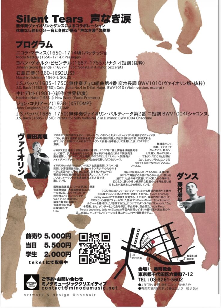 Silent Tears ― 声なき涙|蓑田真理 無伴奏ヴァイオリン・リサイタル × 舞踊家 藤村港平(2025年12月4日 四ツ谷・番町教会)